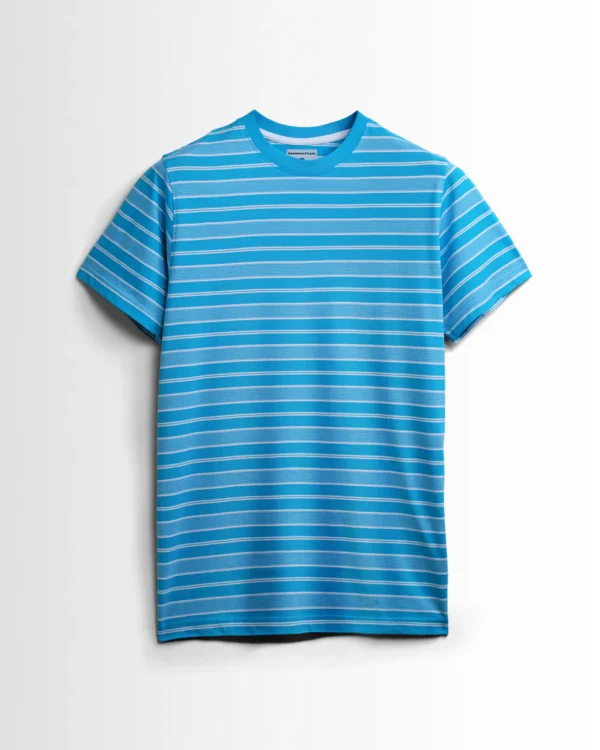 Premium Yarn Striped Cotton T-Shirts (Hawai Blue/White)